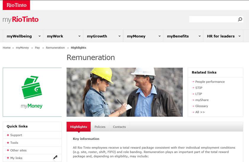 Creative Director for UI/UX of employees HR web portal, myRioTinto. Ensured design and interface was aligned with the companies vision.